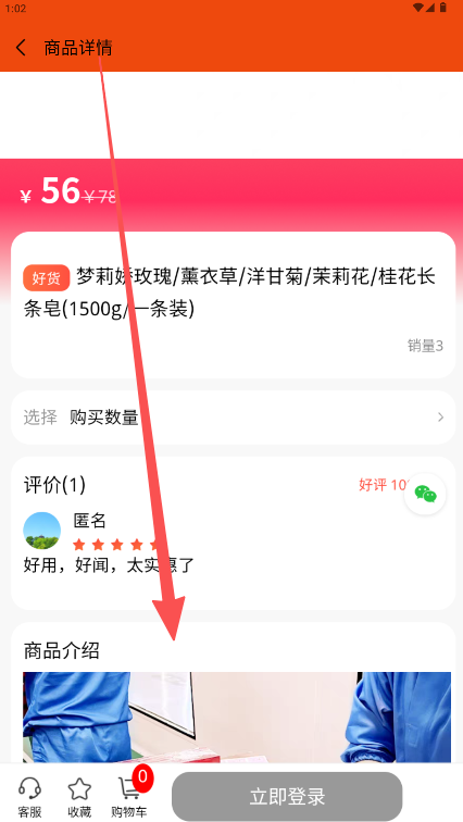 3、商品详情页上下滑动查看商品信息并登录购买。