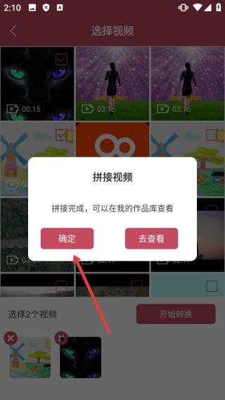 4、视频拼接完成后,点击【确定】,即可完成视频拼接操作。