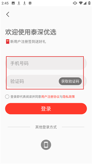 4、在登录界面输入手机号码,点击【获取验证码】并填写,勾选协议后点击【登录】,即可完成购买操作。