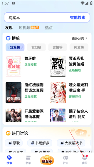 1、在【搜索】页面,点击底部【我的】功能。