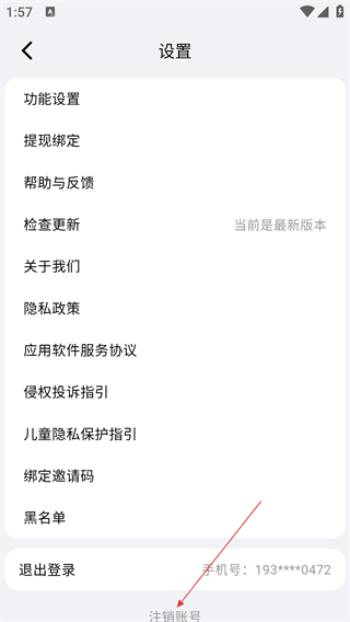 3、在设置页面,找到【注销账号】选项,点击可进入账号注销流程。