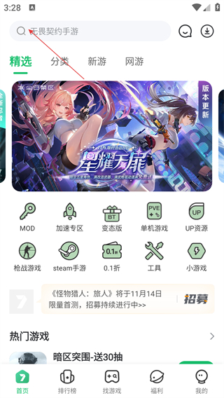 2、在应用首页,可通过顶部搜索框搜索应用。