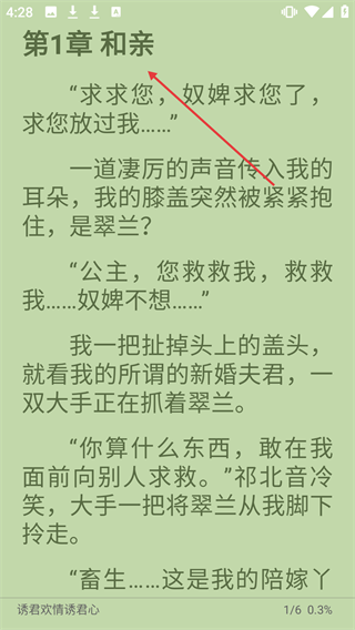 4、在阅读界面即可开始阅读《诱君欢情诱君心》的第1章和亲内容。