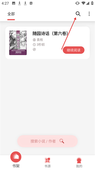 1、在书架界面点击右上角搜索图标,进入搜索界面。