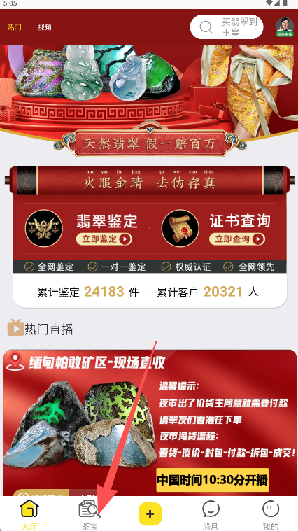 1、在应用底部导航栏点击“鉴宝”进入服务页面。