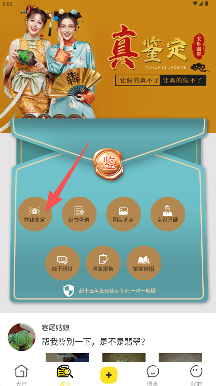 2、在服务列表中选择“在线鉴定”功能,并根据指引选择物品的购买渠道。