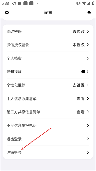 3、在设置界面点击【注销账号】,进入注销账号说明页。
