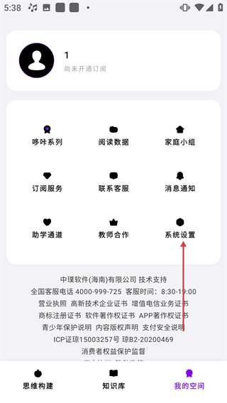 2、在个人空间界面点击【系统设置】,进入设置界面。