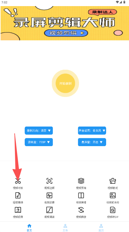 1、在软件首页点击“视频时长”启动屏幕录制功能。