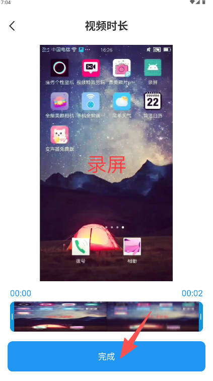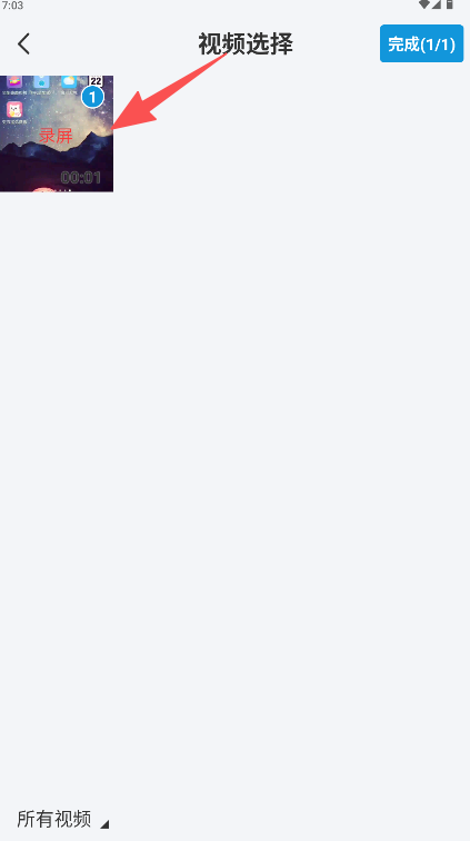 2、录制结束后在文件列表中选择目标视频,右上角“完成”进入编辑界面。