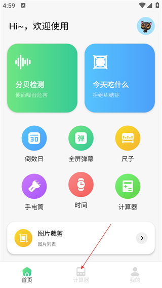 1、在应用首页,点击底部【计算器】选项,进入计算器功能板块。
