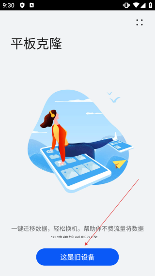 1、进入平板克隆界面,可点击【这是旧设备】,一键迁移数据,轻松换机,享受不费流量的数据迁移服务。