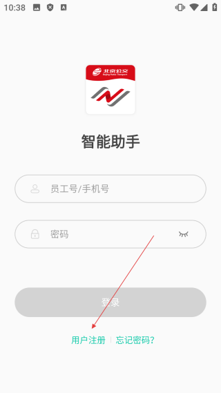 1、在智能助手登录界面,点击【用户注册】,进入注册界面。