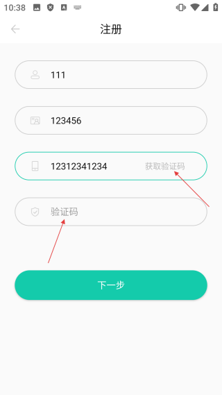 3、在注册界面,点击【获取验证码】,获取并填写验证码。