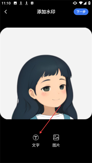 3、进入添加水印界面后,点击【文字】选项,选择添加文字水印。