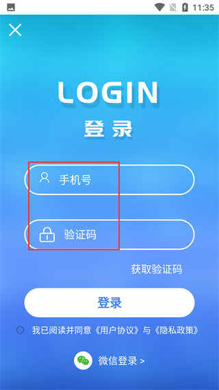 4、在登录界面,填写【手机号】和【验证码】,即可完成登录。