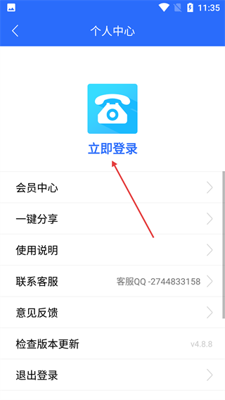 2、在个人中心界面,点击“立即登录”,进入登录方式选择界面。