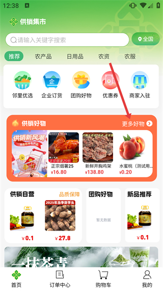 1、点击【更多好物】,进入供销好物页面,可查看各类供销商品。