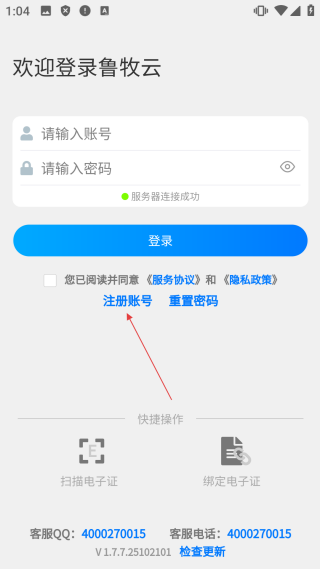 1、在鲁牧云登录界面,点击【注册账号】,进入注册界面。