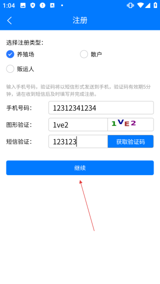4、在注册界面,点击【继续】,即可继续完成鲁牧云账号注册操作。