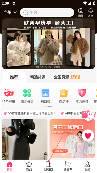 1、在软件首页中,点击底部【找档口】选项,进入找档口页面。