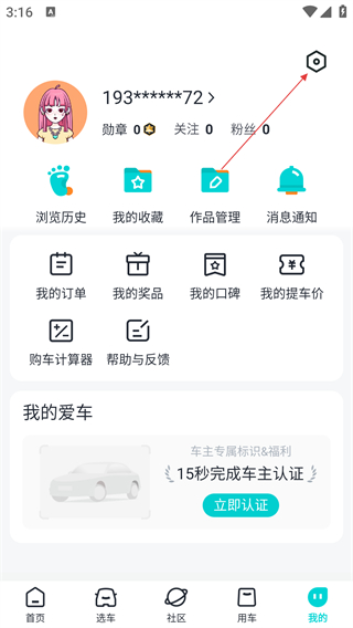 2、在个人中心页面,点击右上角设置图标,进入设置页面。