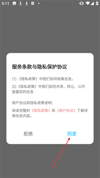 1、点击【同意】按钮,可继续使用应用的各项功能。