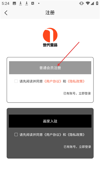 4、在注册页面,点击【普通会员注册】,可进行普通会员注册操作。