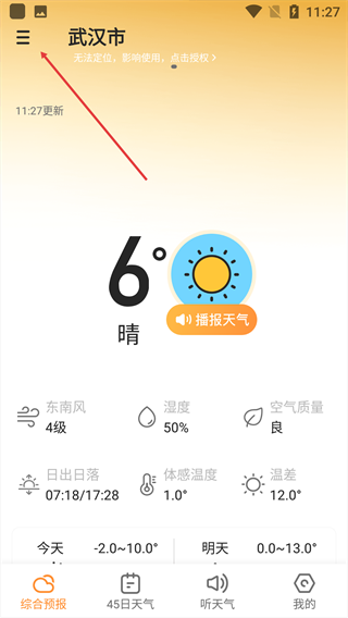 2、支持自动精准定位当前城市,同步呈现实时天气实况、全天时段气温趋势、中长期预报,提前预判天气变化走向。
