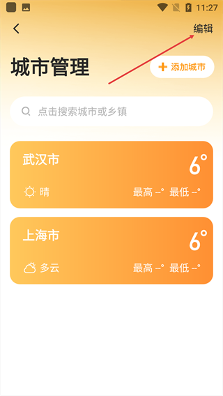 2、在城市管理页,点击右上角【编辑】按钮,进入城市管理的编辑状态。