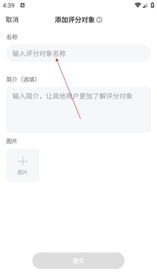 4、在添加评分对象页面,输入评分对象名称、简介并上传图片后,点击【提交】完成添加操作。