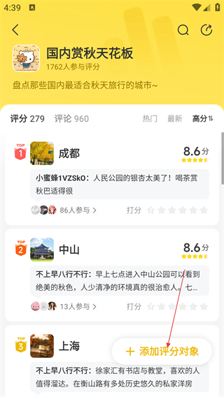 3、在榜单详情页,点击【+添加评分对象】按钮,进入添加评分对象页面。