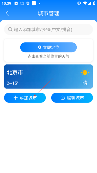 2、在城市管理界面,点击【添加城市】,进入添加城市界面。