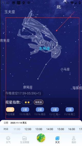 4、进入天文界面,可【查看星座分布,了解观星指数,获取天文观测信息】,享受天文探索服务。