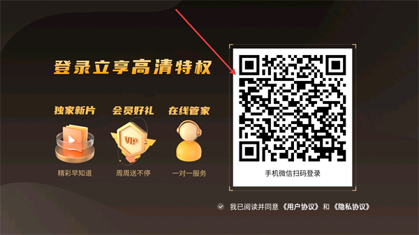 4、手机微信扫码登录后,可立享高清特权及独家新片、会员好礼等权益。