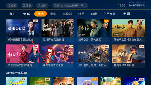 1、在BestTV精选板块可找到【孤独美食家】等各类影视内容,按需选择观看。