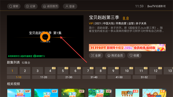 4、进入【宝贝赳赳第三季】可查看剧集列表并播放。