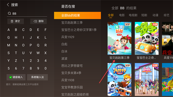 3、搜索【BB】可找到【宝贝赳赳第三季】等相关内容。