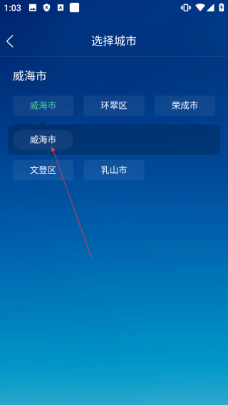 4、在省份城市选择界面,点击【想要查看天气的城市】,即可添加该城市天气信息。