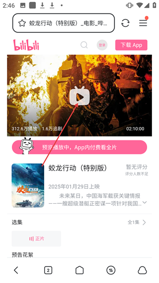 4、进入B站播放页后,点击播放按钮即可观看【蛟龙行动(特别版)】。