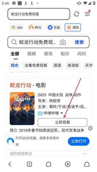 3、在蛟龙行动免费观看页面后,点击【立即观看】按钮。