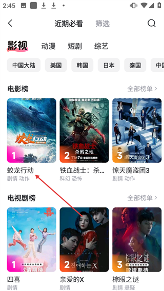 2、在近期必看的电影榜中,点击【蛟龙行动】进入详情页。