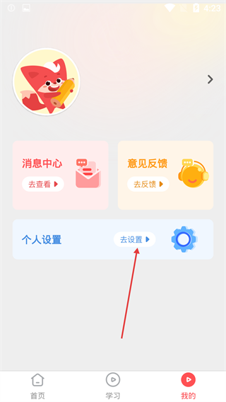 1、在【我的】页面找到【个人设置】,点击【去设置】进入设置页面。