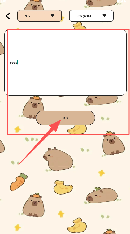 3、于上方输入框键入需翻译的文本点击下方“确认“显示翻译结果。