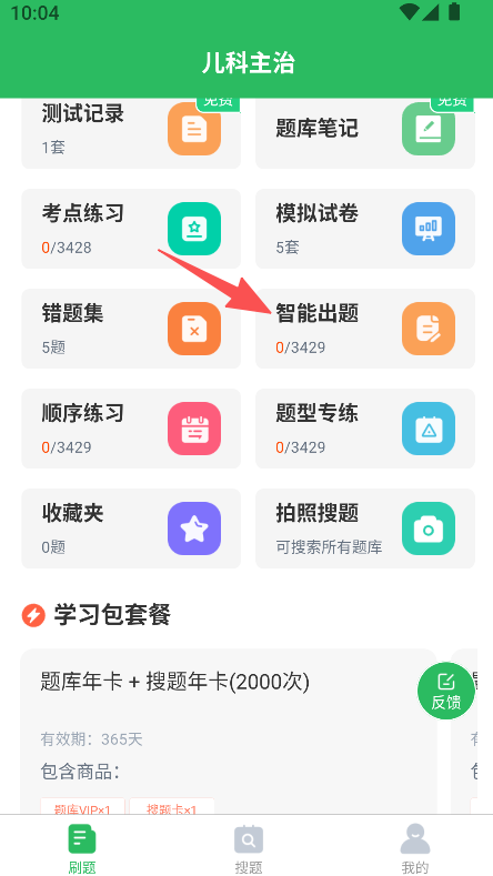 2、具备智能出题功能,可针对性推送题目,助力专攻儿科主治薄弱知识点。