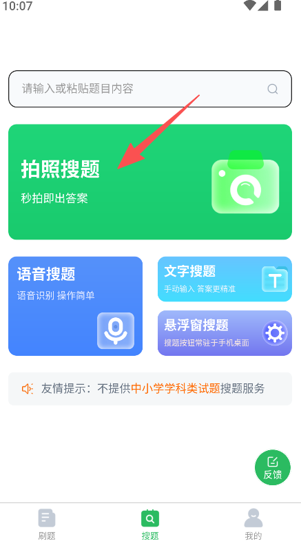 3、进入搜题板块,点击拍照搜题,快速获取题目答案解析。