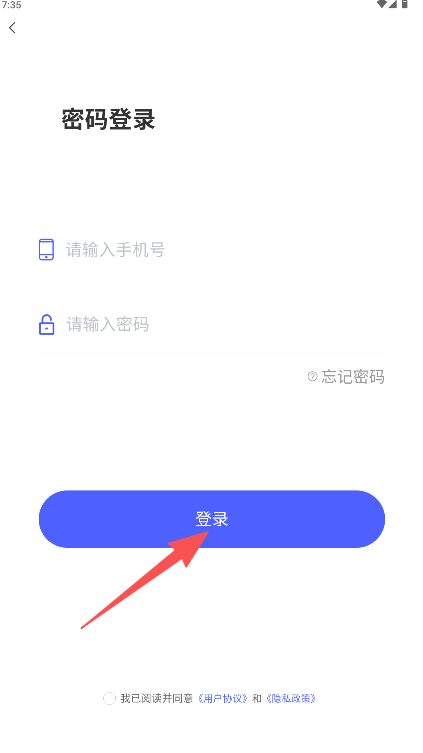 1、输入手机号与密码,勾选同意协议后点击“登录”。
