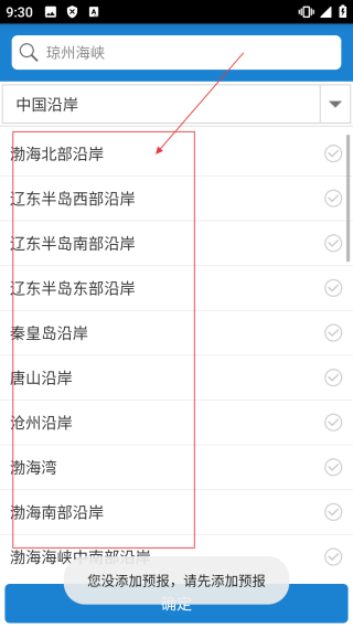 2、进入预报添加界面,可【添加预报】,获取对应区域的海洋天气信息。