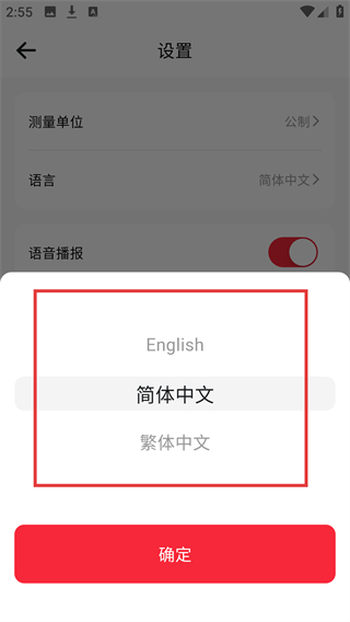 4、在语言选择弹窗中,可选择【English】-【简体中文】-【繁体中文】,选后点【确定】即可切换语言。
