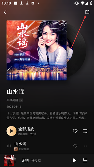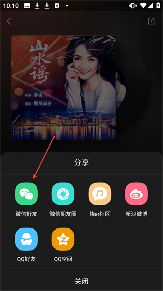 3、在专辑详情页右上角,点击分享图标,弹出分享选项列表。